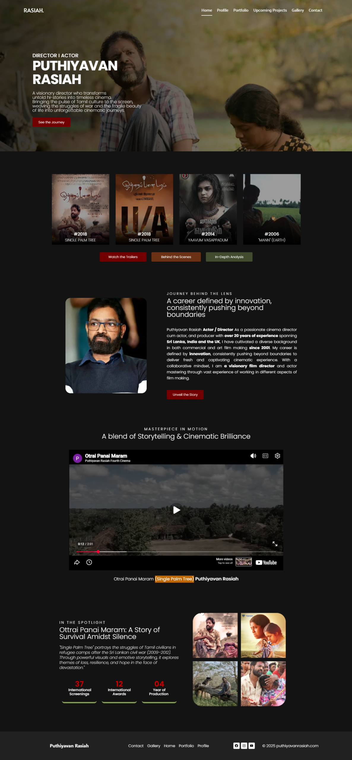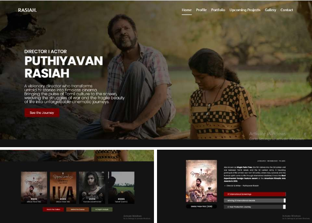 The portfolio website for Tamil Sri Lankan film director Puthiyavan Rasiah was designed to reflect his impactful storytelling and cultural focus. Featuring a creative, visually engaging layout, the site highlighted his work on Tamil culture, war, and post-war themes. Technical elements included immersive media galleries, interactive sections showcasing his global impact, and a responsive design for optimal viewing on all devices. The design balanced artistic presentation with intuitive navigation, creating a compelling digital space that celebrated his unique cinematic voice and career.
